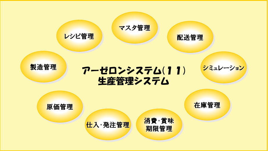 ■AZ(11)食品加工生産管理システムは、AZ(10)食品加工業システムの生産管理部分だけ取り出しました。販売管理はこれまでのシステムを使いたいが、生産管理だけシステム化したい、又は生産管理システムのバージョンアップしたい食品企業様向けです。